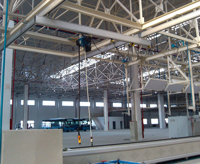 鋁合金軌道組合式起重機(jī)械系統(tǒng)需要客戶的廠房屋頂結(jié)構(gòu)可承受足夠強(qiáng)度、安全支撐起重機(jī)負(fù)載;