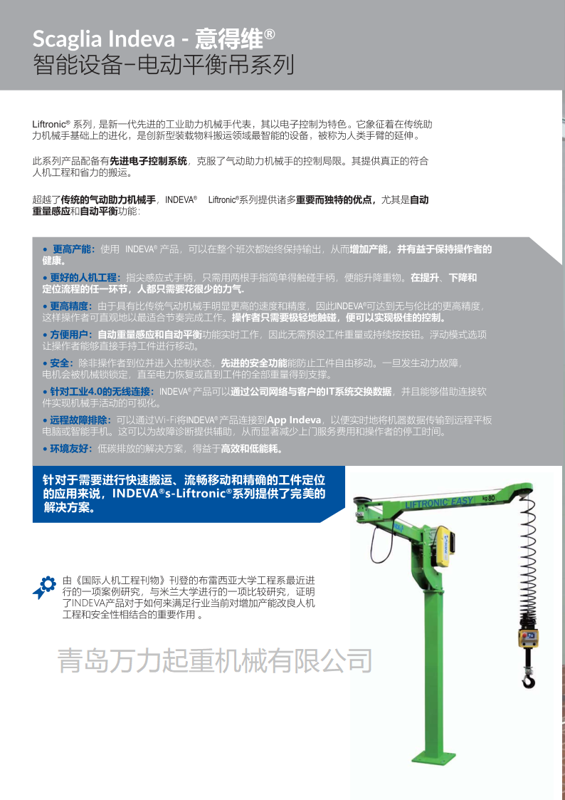 1、Scaglia集團成立于1838年,專注于物料搬運及工業(yè)操縱器,INDEVA自1975年開始開發(fā)和生產(chǎn)了世界上第一臺電子智能助力機械手。